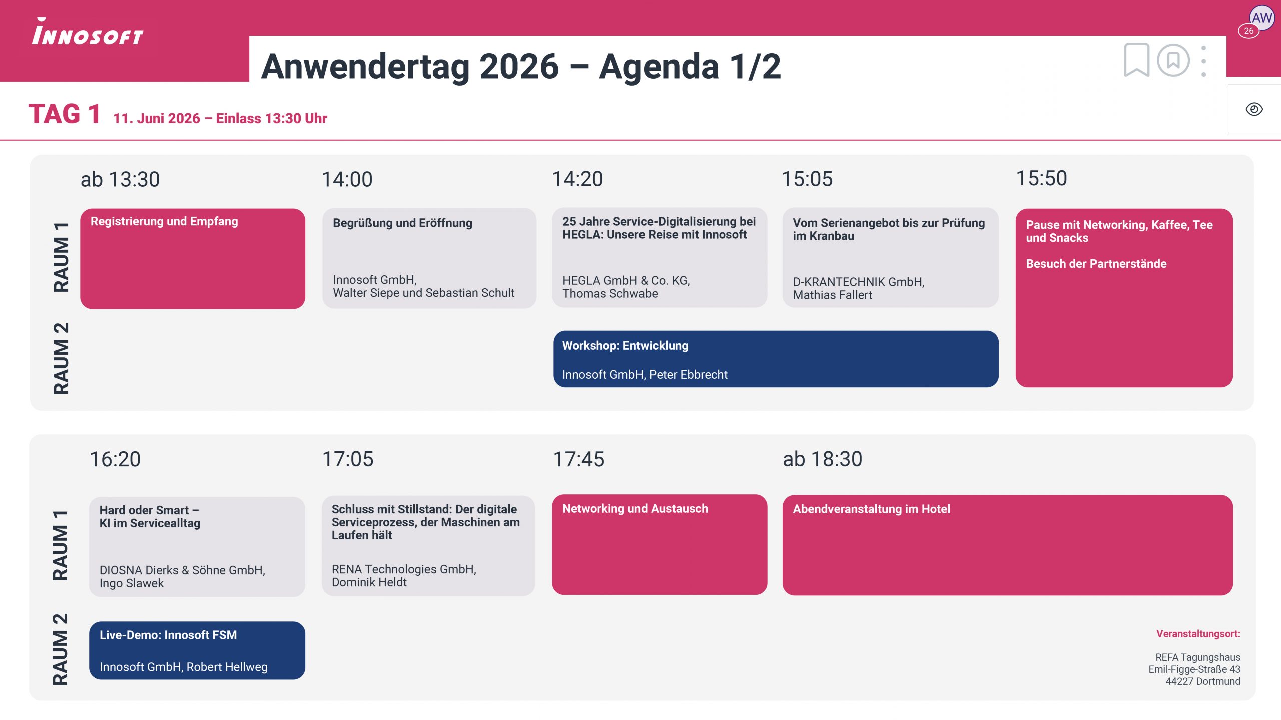 Der Anwendertag 2023 war eine sehr erfolgreiche Veranstaltung, die Kundinnen und Kunden, Partner sowie das Innosoft Team in einer außergewöhnlichen Atmosphäre zusammengebracht hat. Die Location – das Stadion in Dortmund – bot den perfekten Rahmen für einen Tag voller spannender Insights, lebendigem Austausch und beeindruckender Ausblicke auf kommende Entwicklungen. In verschiedenen Sessions erhielten die Teilnehmenden praxisnahe Einblicke in neue Funktionen, Use-Cases und technologische Trends im Field Service. Besonders wertvoll waren die offenen Gespräche, bei denen viele konkrete Herausforderungen aus dem Alltag direkt mit Expertinnen und Experten diskutiert wurden.