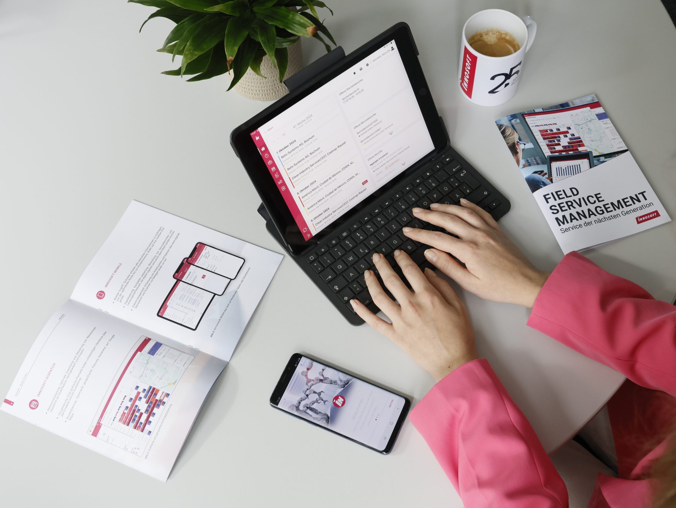 - Moderne, webbasierte Technologie statt lokaler Clients: FSM läuft komplett browserbasiert oder auf mobilen Geräten – ohne lokale Installationen, ohne komplizierte Updates.